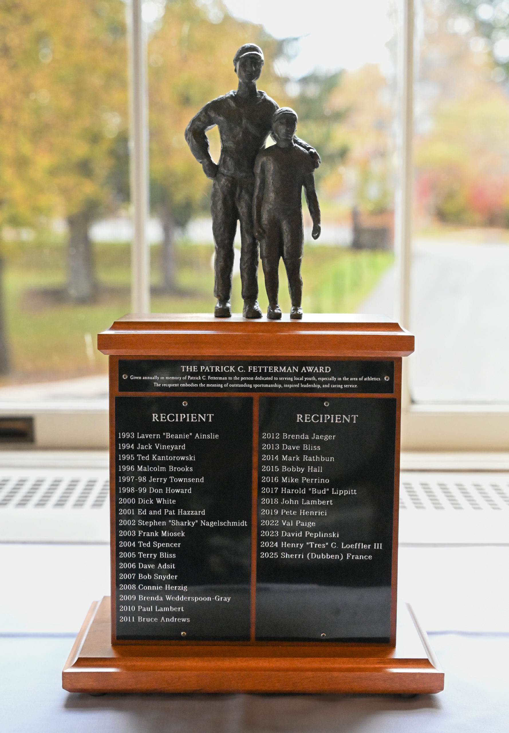 The award is given in memory of Patrick C. Fetterman, long time Associate Director of the ACC Gymnasium and the Clark Sports Center. This honor recognizes individuals who have demonstrated outstanding commitment to serving Cooperstown’s youth, particularly through athletics. Each year, the Clark Sports Center hosts a special presentation celebrating the recipient’s impact, with friends, family, and community members in attendance. The recipient receives a commemorative plaque and is added to the perpetual Fetterman Award trophy, sculpted by local artist Fred Blatt, which is displayed in the Sports Center’s main trophy case.